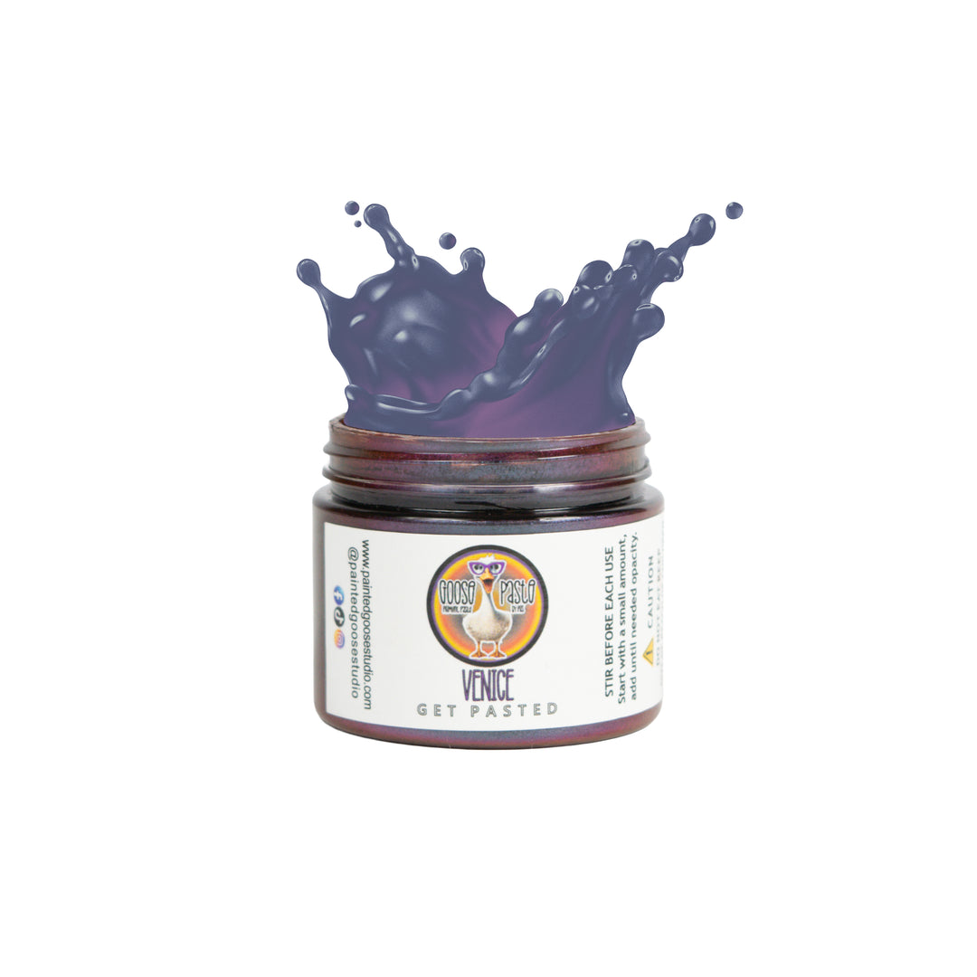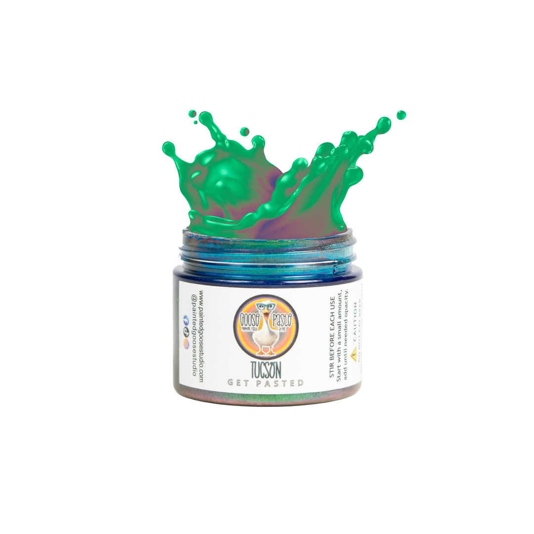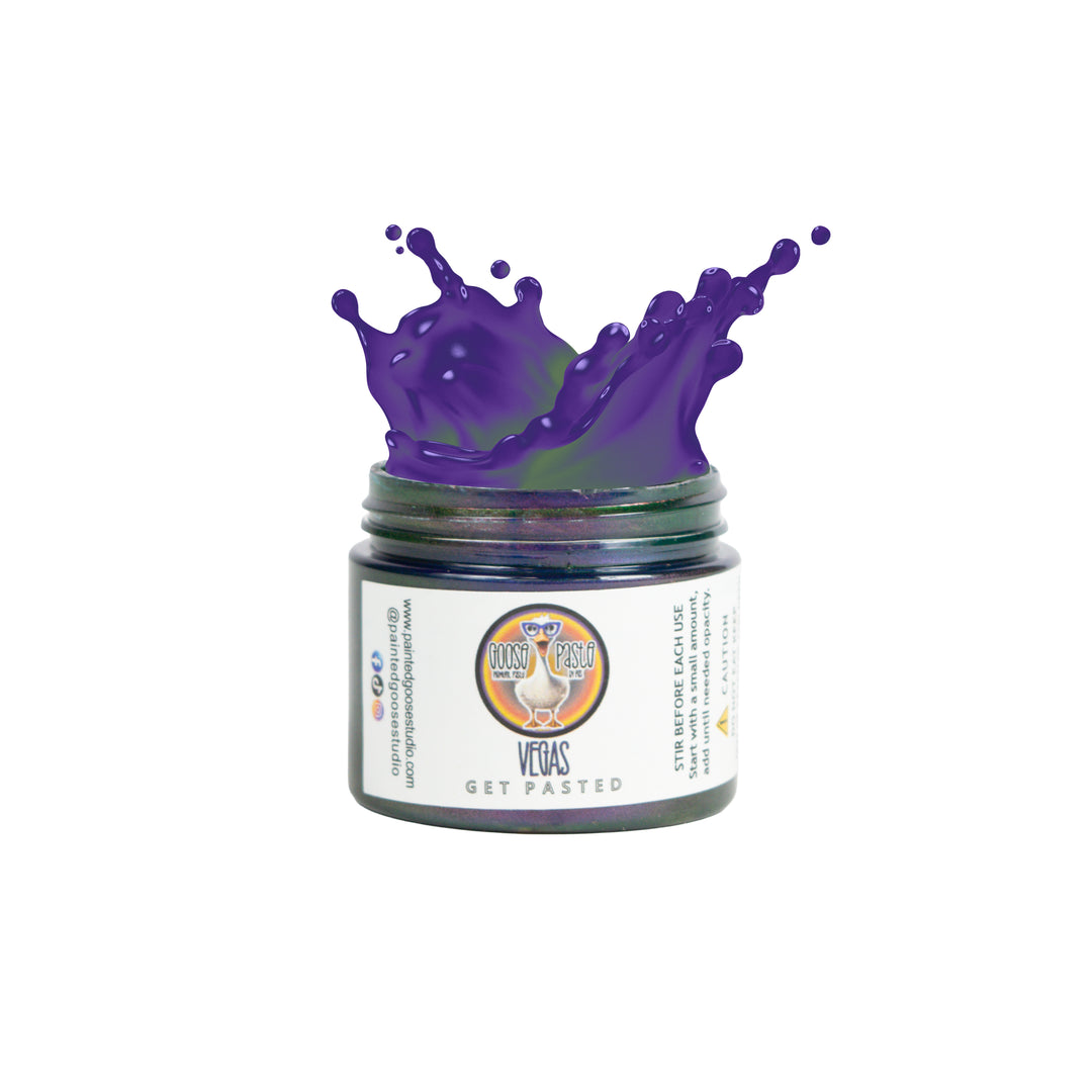 Shifty Flock™ plays beautifully with core Goose Paste® shades, metallics, and inks, acting as the drama layer that turns a good palette into a conversation piece. Whether you reach for a simple flip-flop or a full chameleon, these shades are made for makers who love interaction: tilt, turn, move, and let the color answer back. When your work needs attitude, motion, and color that never looks quite the same twice, you call in the Shifty Flock™.